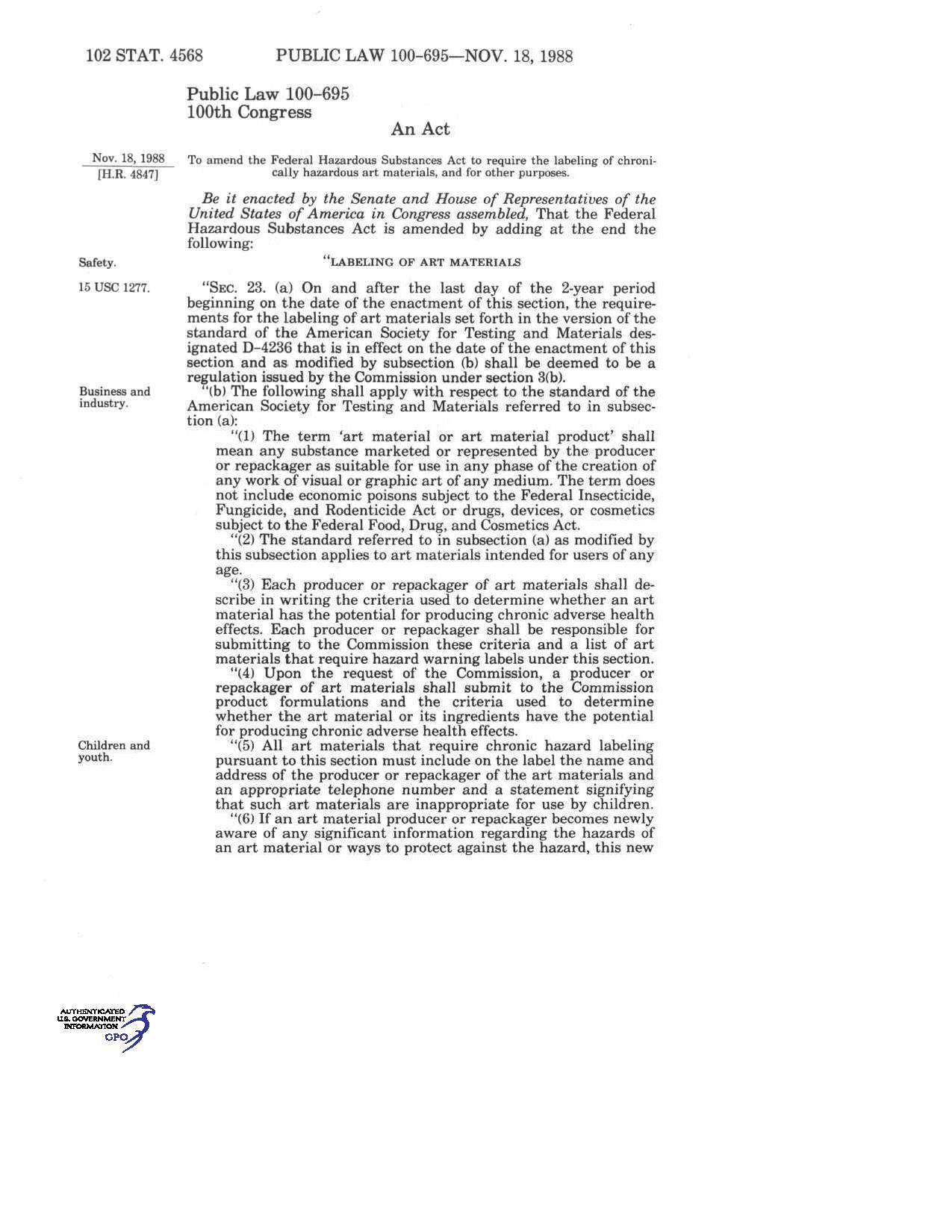 ASTM D-4236: Standard Practice for Labeling Art Materials for Chronic Health Hazards