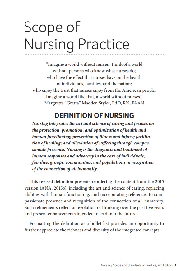 The American Nurses Association has developed several standards related to nursing practice, which are designed to guide the professional practice of nursing and promote quality patient care. Some of the ANA standards include: